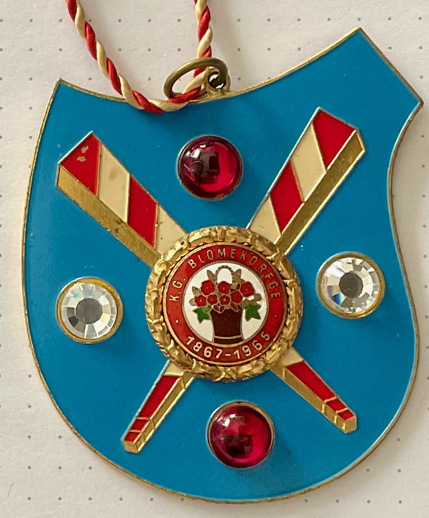 Startseite Archiv/ Physische Objekte im Archiv/ Orden, Pins und andere Anstecker/ Sessionsorden/ (Pritsche mit Edelsteinen)/ (Pritsche mit Edelsteinen) Sessionen: 1965 Motive:Prinzenpritsche/Prinzenpeitsche, blauer Wappenschild Besonderheiten:farbige Glaseinfassungen in Brillantschliff