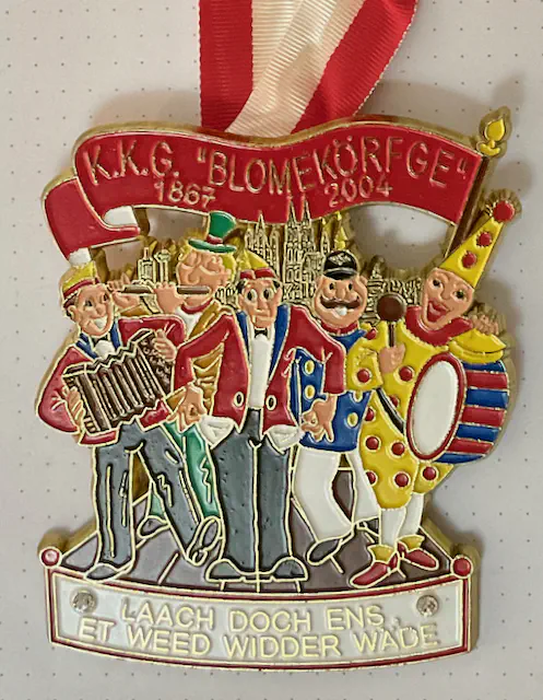Startseite Archiv/ Orden/ Laach doch ens, et weed widder wäde/ Laach doch ens, et weed widder wäde Sessionen: 2004 Motive:Karnevalisten mit Instrumenten um einen mit leeren Taschen